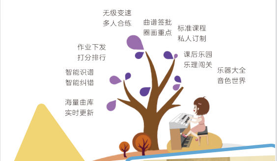 不怕,我們的智能教學(xué)陪練系統(tǒng)里包括智能走譜糾錯(cuò)、積分、排行等激勵(lì)體系,徹底解放家長,讓孩子練不釋手!